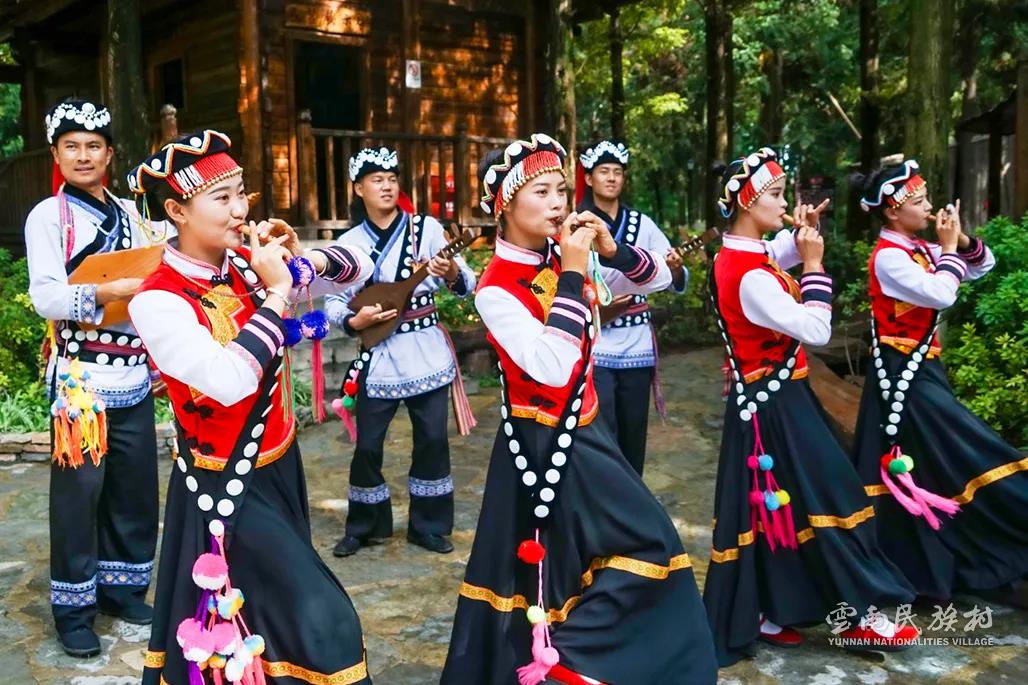 傣族人口約107萬人,主要分布在云南的德宏傣族景頗族自治州、西雙版納傣族自治州及瀾滄江流域的河谷壩子區(qū)域。傣族寨是進入民族村的第一個村寨,占地面積27畝,三面環(huán)水,綠樹掩映。一幢幢“干欄式”傣家竹樓,通過蜿延的紅砂石小徑聯(lián)向肅穆的緬寺。巍峨壯觀的白塔,精巧玲瓏的風(fēng)雨橋,以及風(fēng)雨亭、水井、鐘亭等建筑充滿著傣家的濃郁風(fēng)情,是傣寨真實的民間景觀再現(xiàn)。一年一度的“潑水節(jié)”期間,這里都有活潑歡快的“象腳鼓舞...